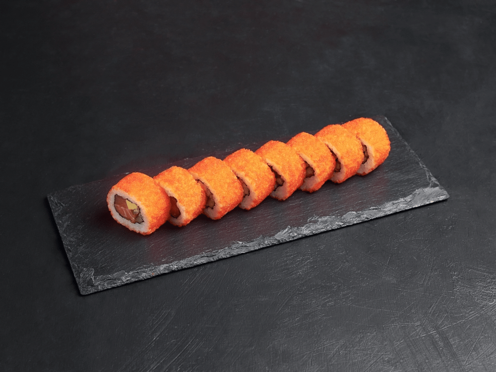 Нори, рис, авокадо, лосось, огурец, тобико, соус спайси