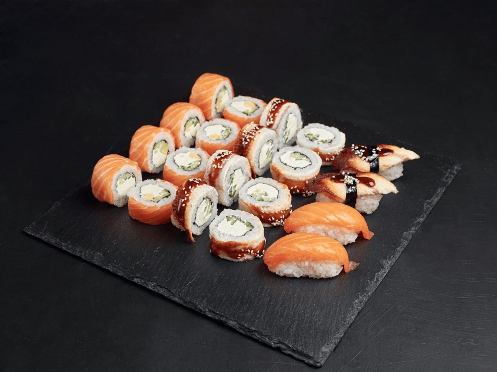Филадельфия, Филадельфия с угрем, 2 суши с лососем, 2 суши с угрем