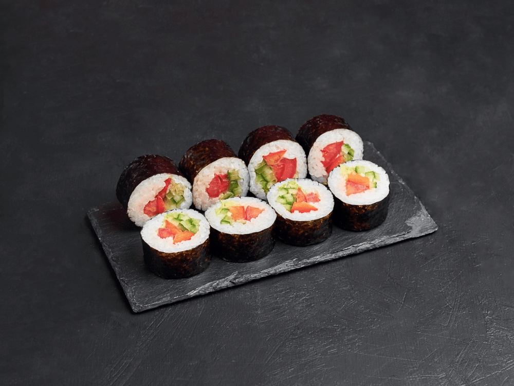 Нори, рис, паприка, огурец, салат айсберг, спайси соус, томаты