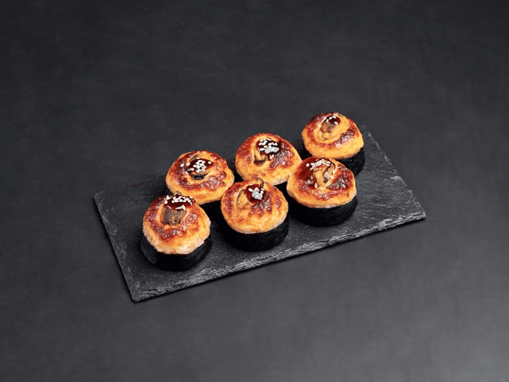 Нори, рис, лосось, мидии, огурец, соус фирменный сырный, унаги соус, кунжут