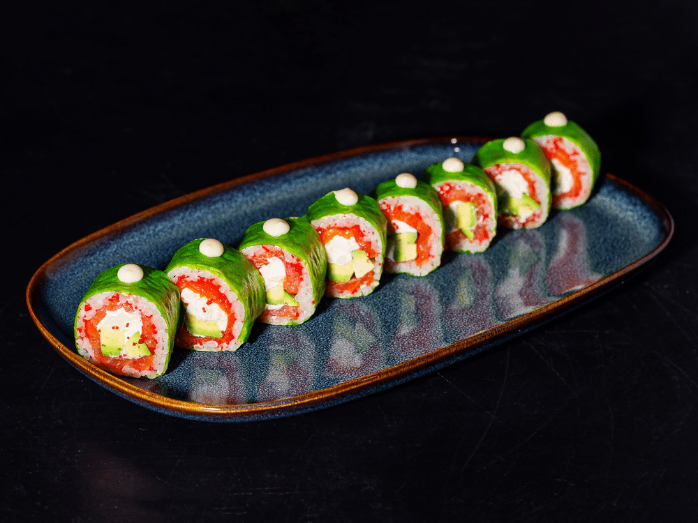 Маменори, рис, сыр Cremette, копченая форель, авокадо, тобико, крем-юдзу