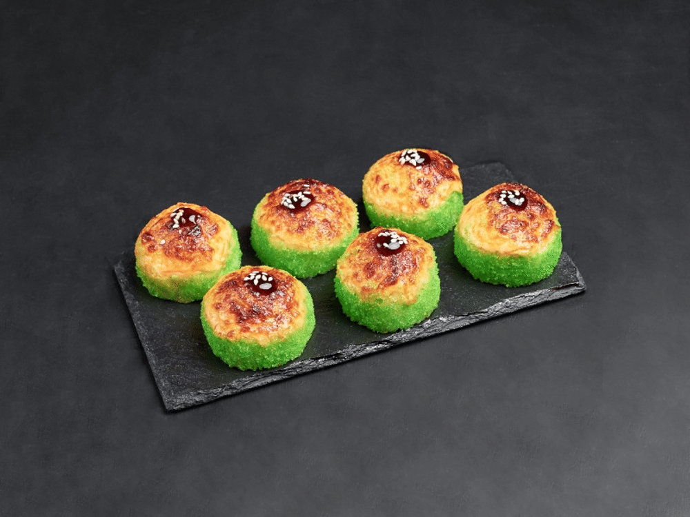 Нори, рис, снежный краб, угорь, лосось, соус фирменный сырный, унаги соус, кунжут