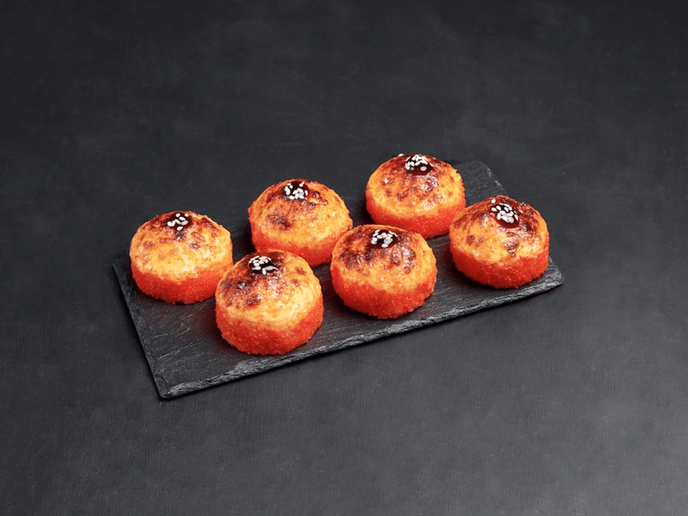Нори, рис, снежный краб, лосось жареный, окунь в кляре, тобико, соус фирменный сырный